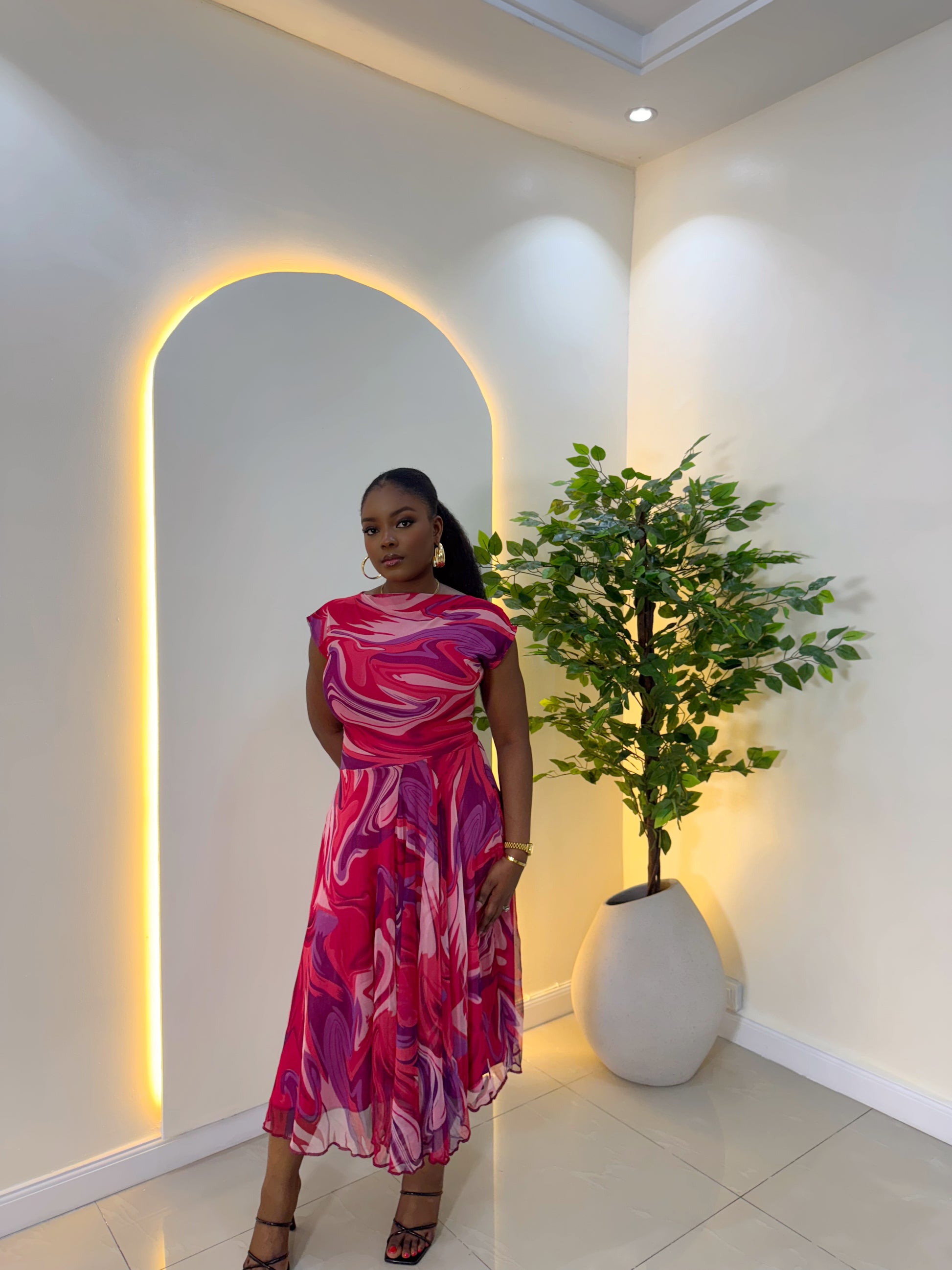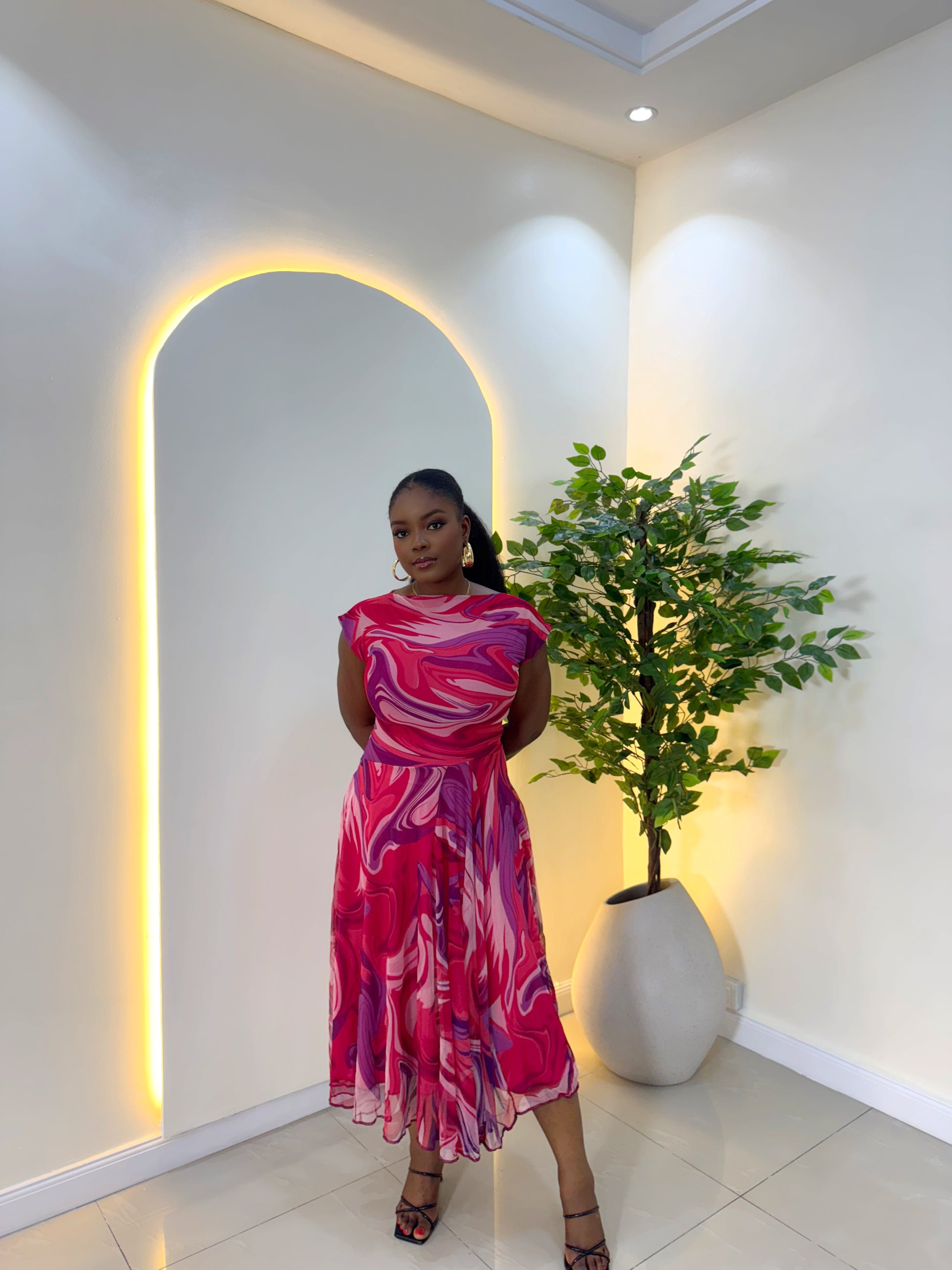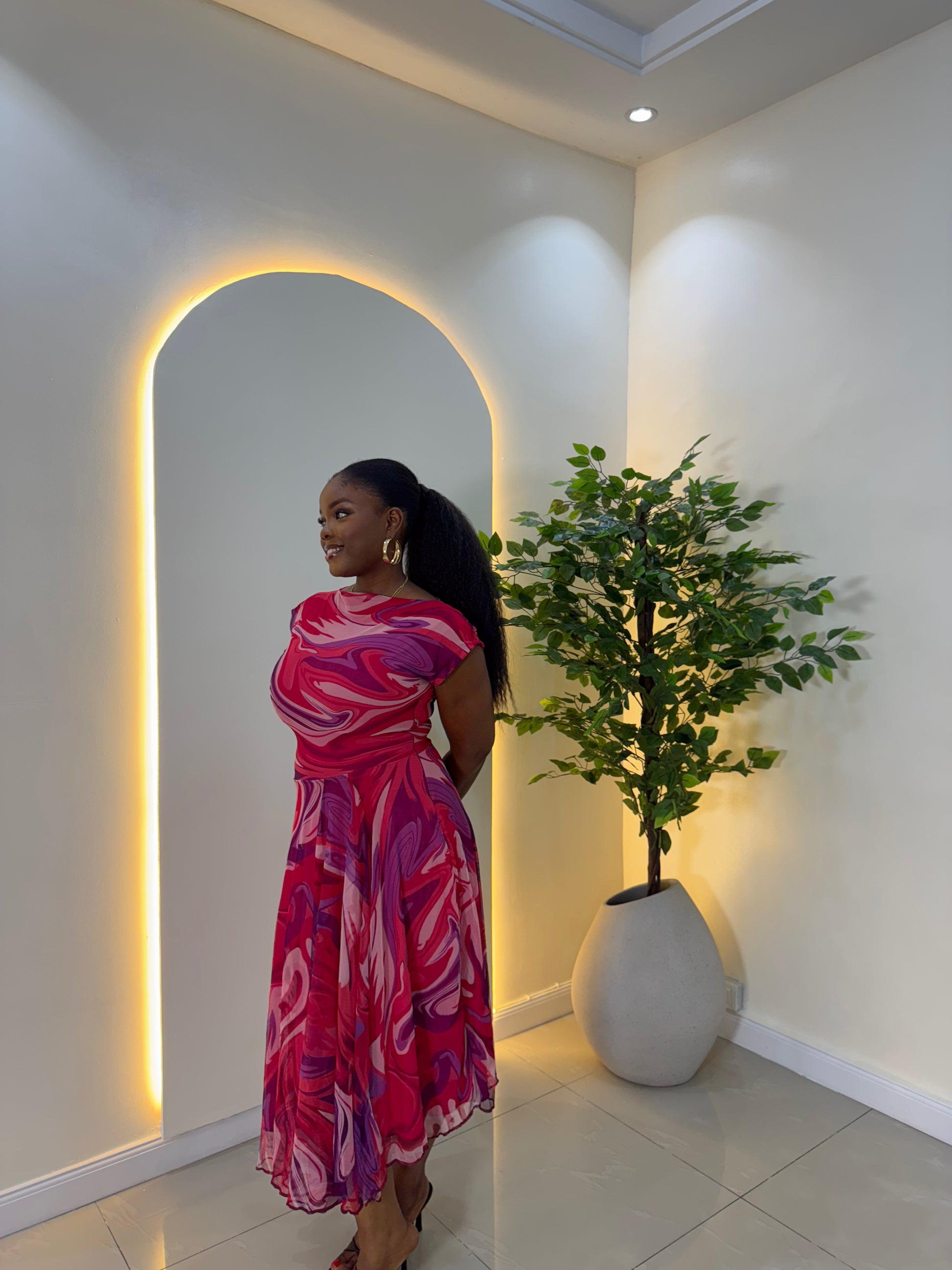 Midi mesh dress with a fully lined bodice and an invisible zipper at the side of the dress.